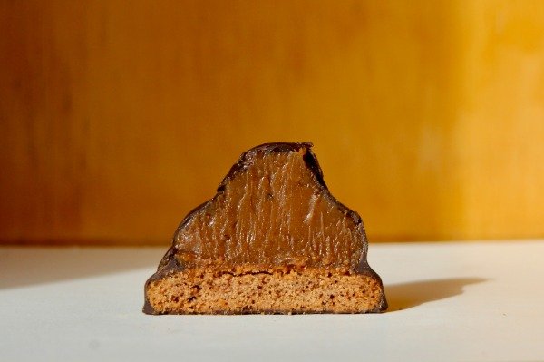 Conito relleno de dulce de leche, galleta marplatense y baño de chocolate semiamargo